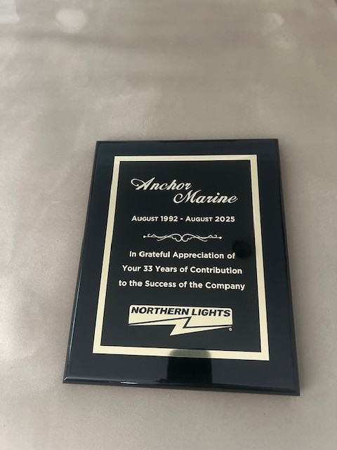 This week, we had the pleasure of presenting Anchor Marine in Miami with a special plaque in honor of their 33 years as a Northern Lights dealer.